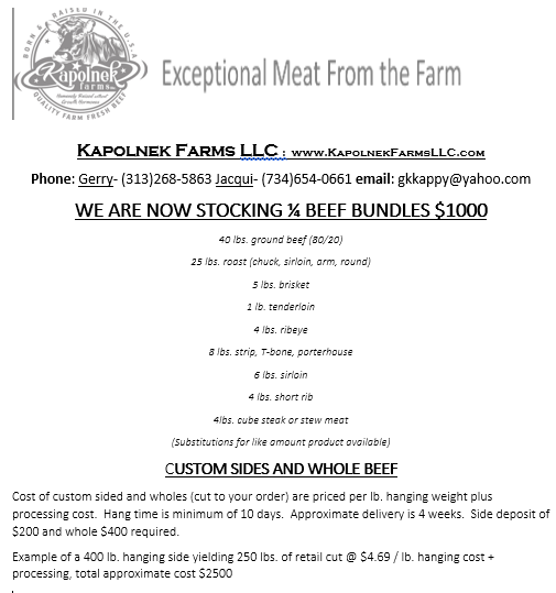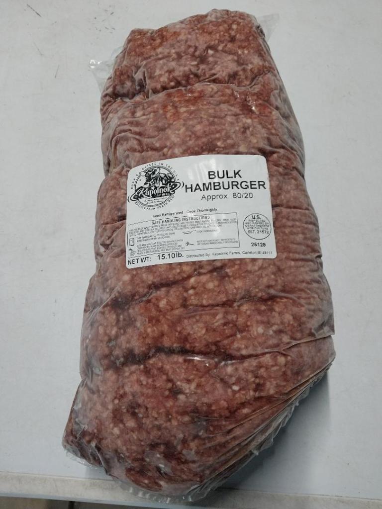 Quarter, Half, and Whole Beef and Bulk Pricing BULK GROUND BEEF 80/20 – 15 lbs. Wholesale Pack $110 Custom Cut Order Form Share this: Click to share on X (Opens in new window) X Click to share on Facebook (Opens in new window) Facebook Like Loading...
